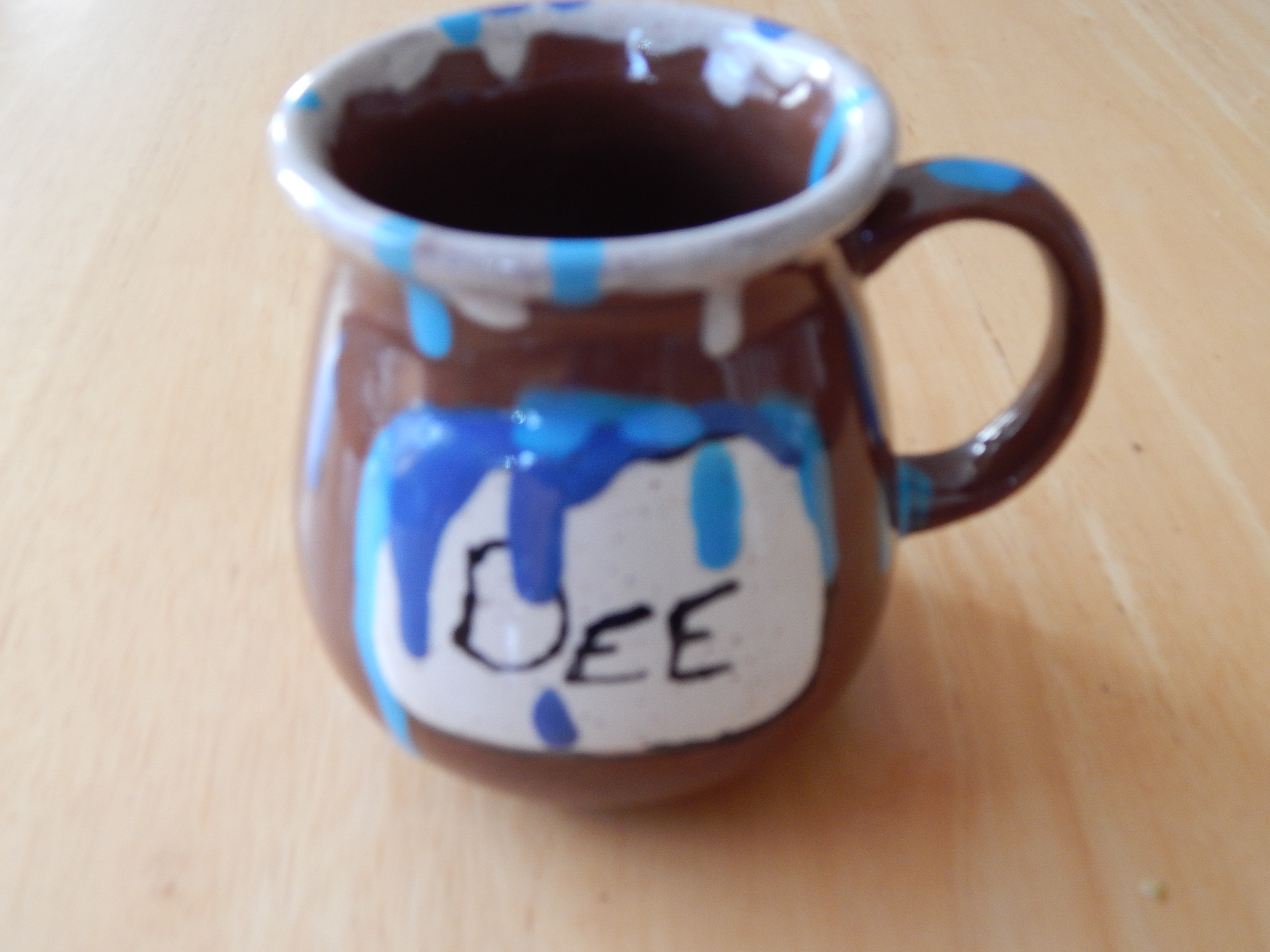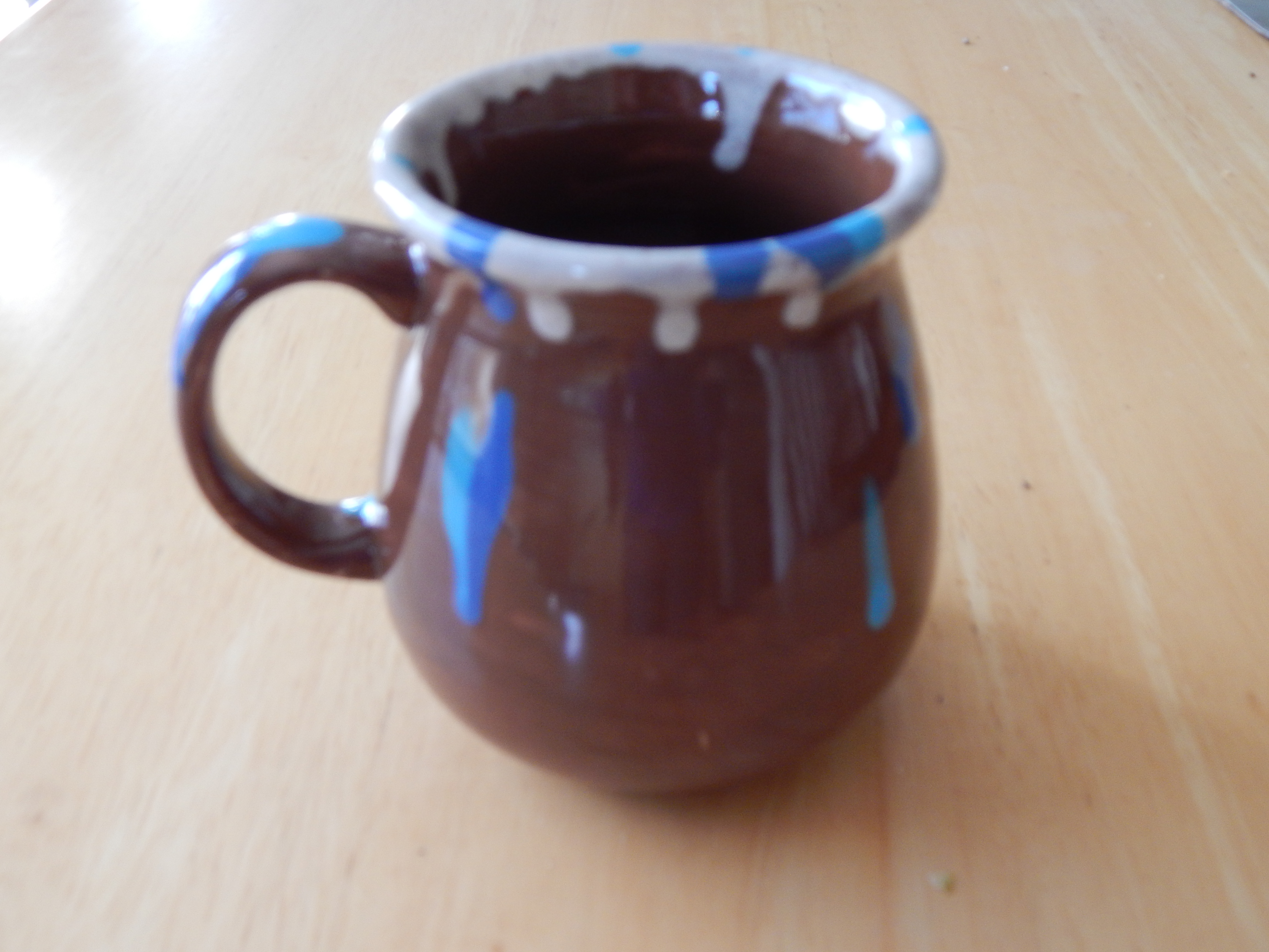 P.S. Here is my fired mug as promised. I’m quite pleased, I haven’t applied glaze on pottery since along time ago in high school. I plan use this mug when I’m painting.