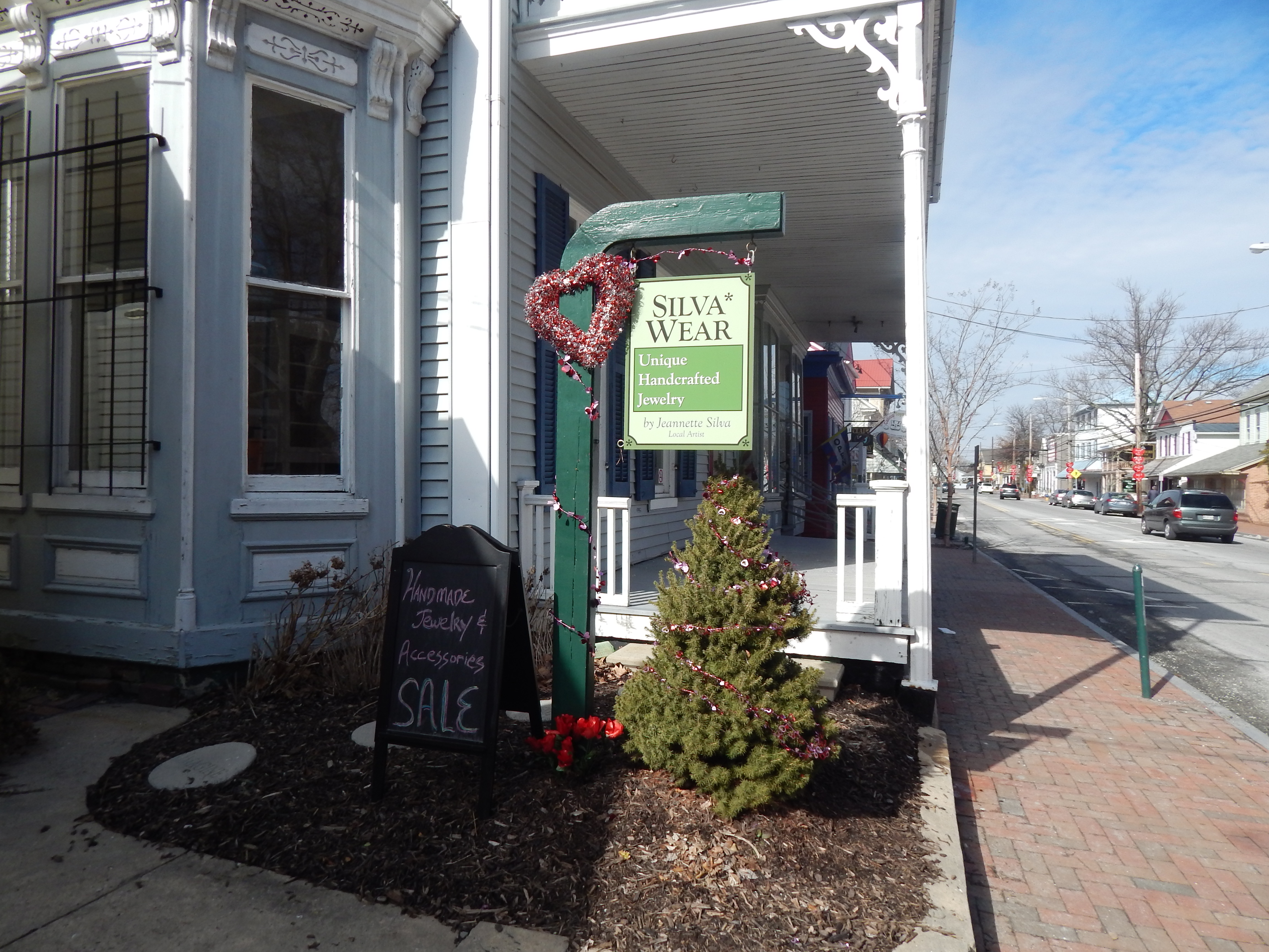 Silva*Wear is a jewelry box treasure of St. Michaels, MD. This tiny store holds distinctively unique handcrafted pieces of jewelry art. Beautiful jewelry welcomes you into the shop. Jeannette of Silva*Wear creates jewelry by using various techniques: crocheted wire, and leather, and wire wrapping in the shop. She is happy to talk about her art and explain the various techniques she uses.