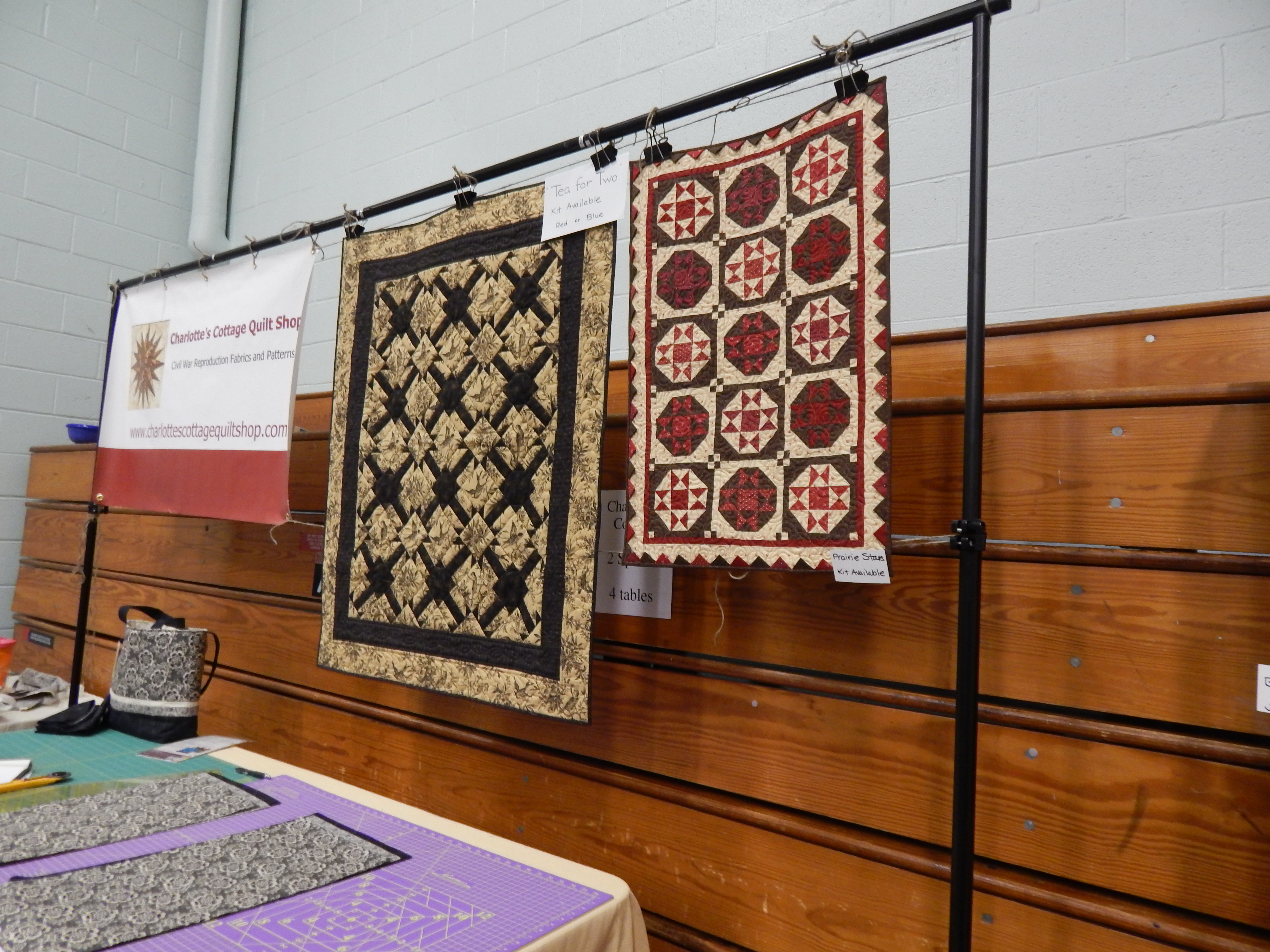If you are interested in starting to quilt a good first step is to go to a quilt show. Joining a quilt guild is also a good start, they will help you with information and classes. There are also quilt shops throughout the Chesapeake Bay region that offer classes. Below is Charlotte’s Cottage Quilt Shop’s fabric, one of the vendors at the show.