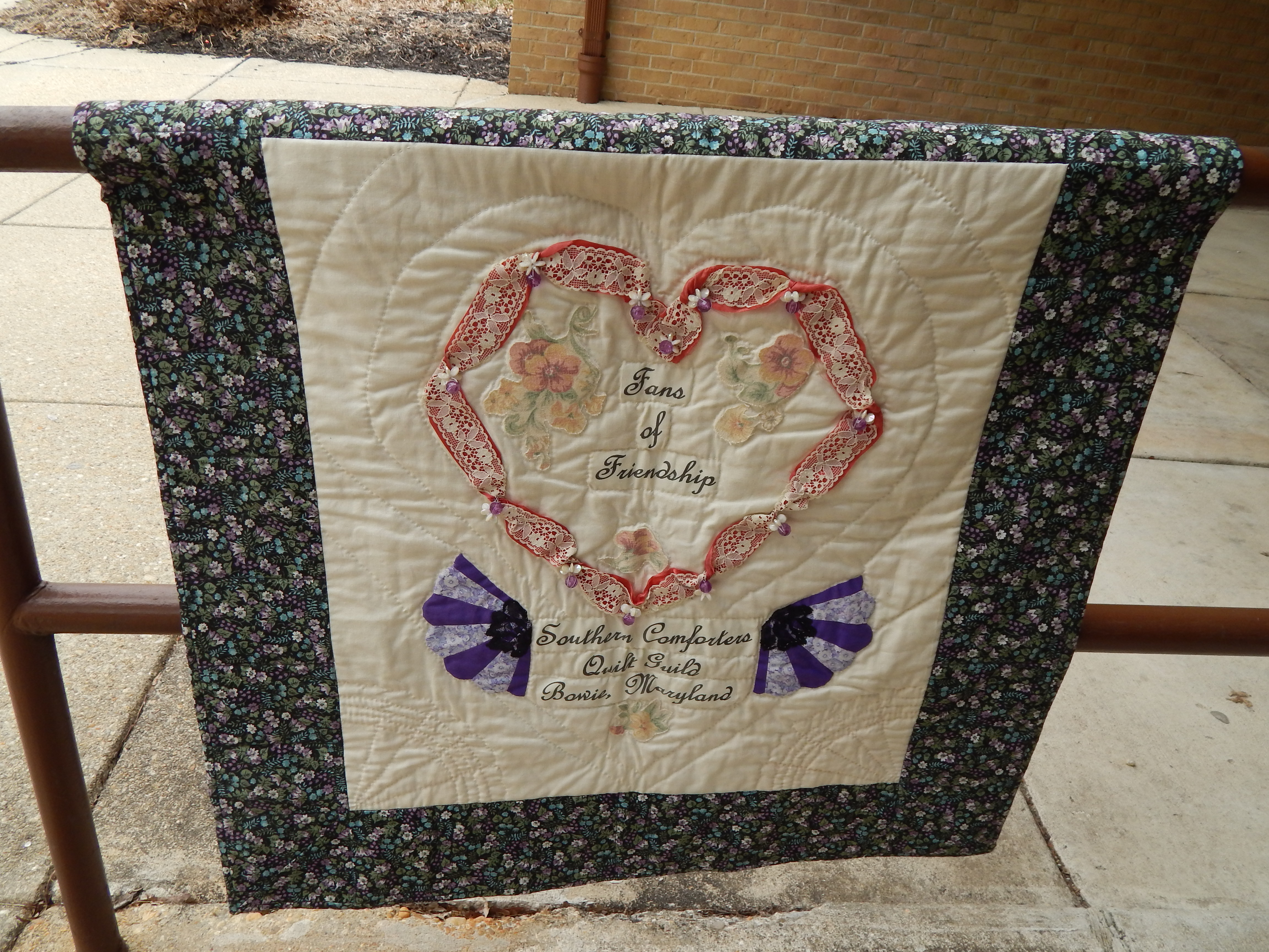 I hope you get a chance to visit a quilt show this year. The Southern Comforters Quilt Guild of Bowie, Maryland had their 23rd annual quilt show this weekend. This quilt show had quilting demonstrations, activities, vendors, appraisals and most importantly QUILTS. The guild members were available through out the show and were eager to explain or answer questions of the attendees. There are about 100 members and the guild was formed in 1982.