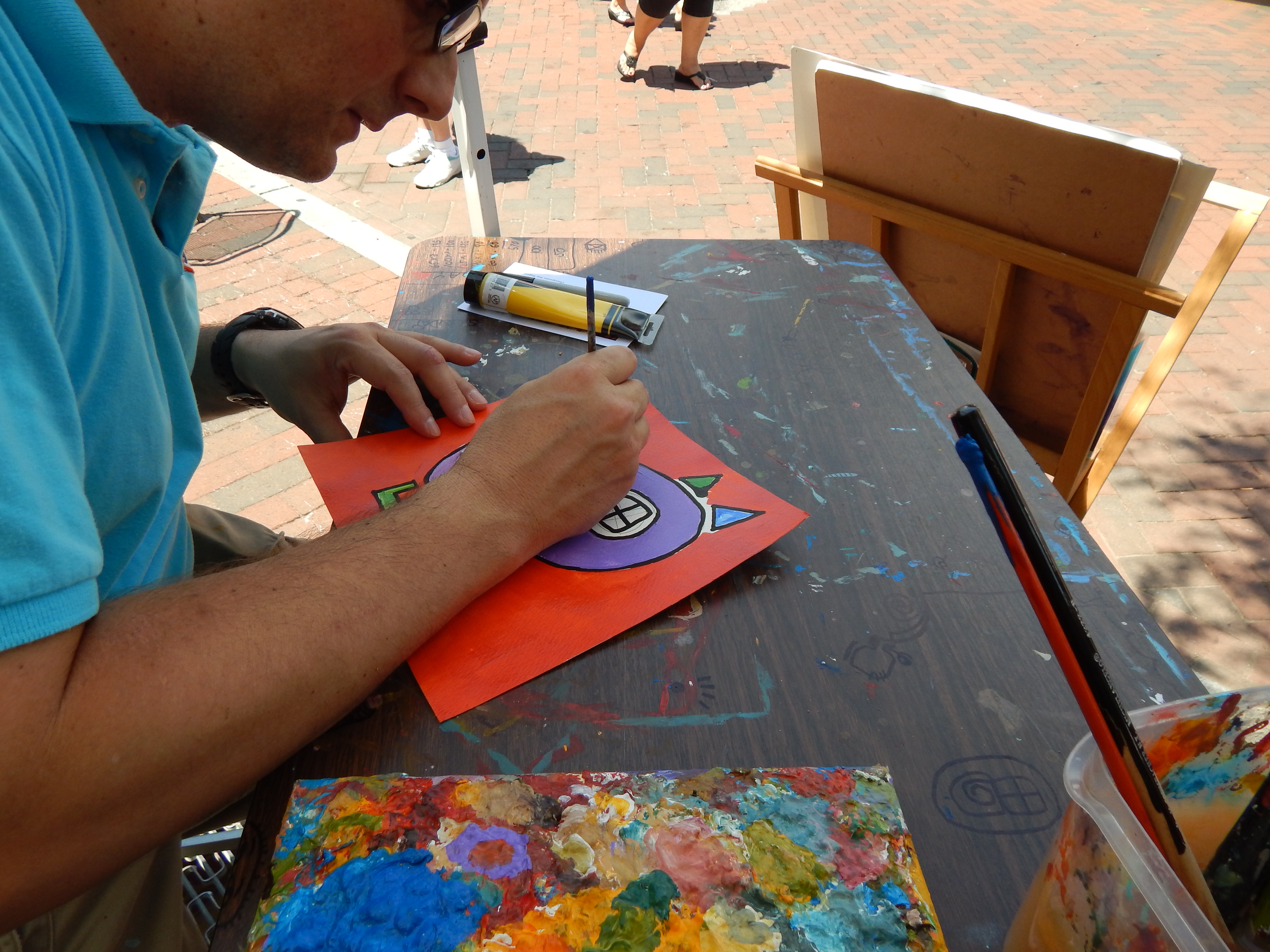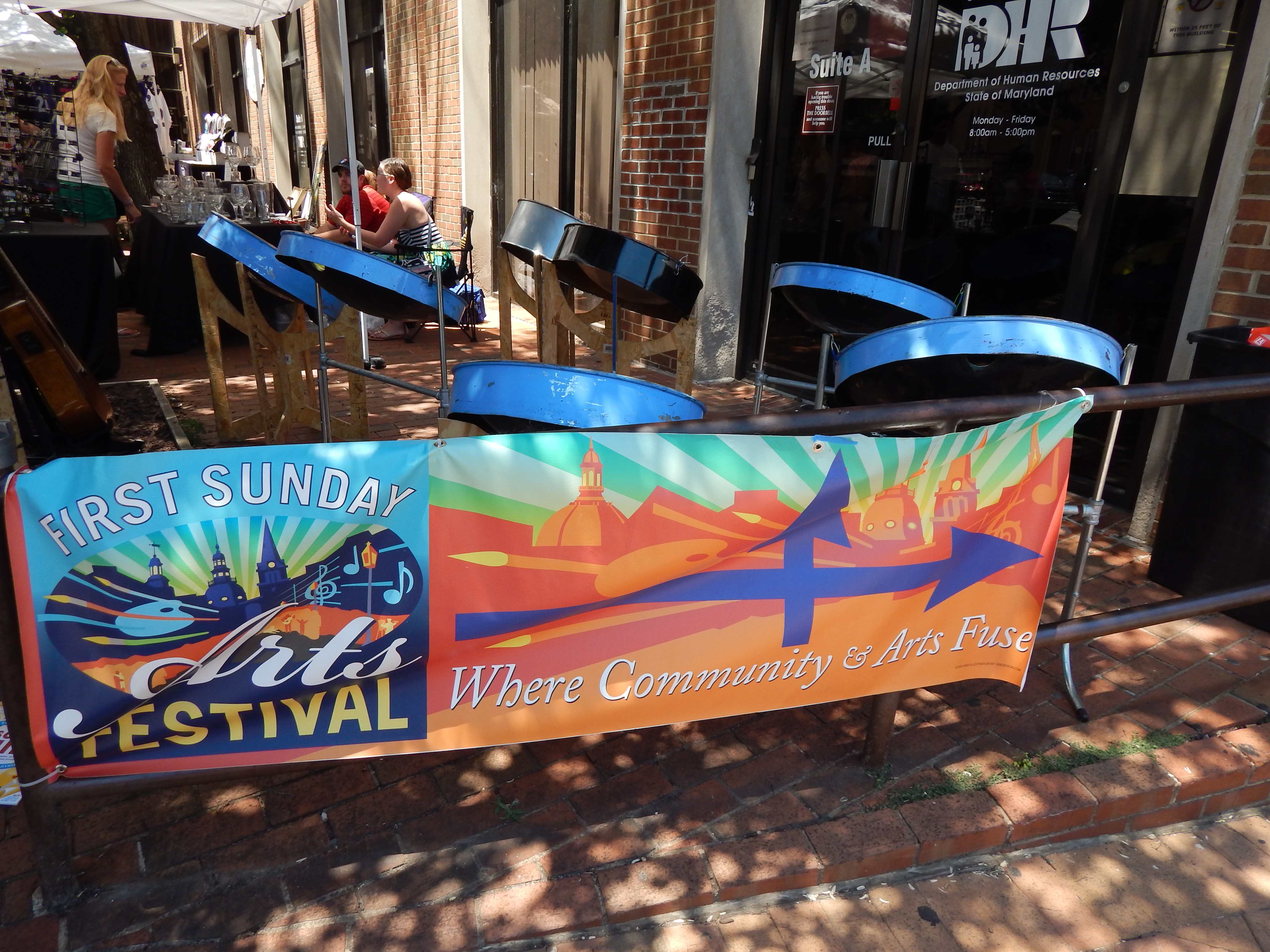 Every First Sunday of the month from May through October Annapolis celebrates First Sunday Annapolis, an art and craft festival. A block of West Street and areas of Calvert Street are blocked off and the festival begins. Music stages are step up through out the festival and you can hear blue grass to steel drums – just all types of music can be heard. Tables are brought out into the street so you can enjoy your lunch and watch the activities. Food, food and more food is available. Lets look at some of the artisans that were at the festival in July.