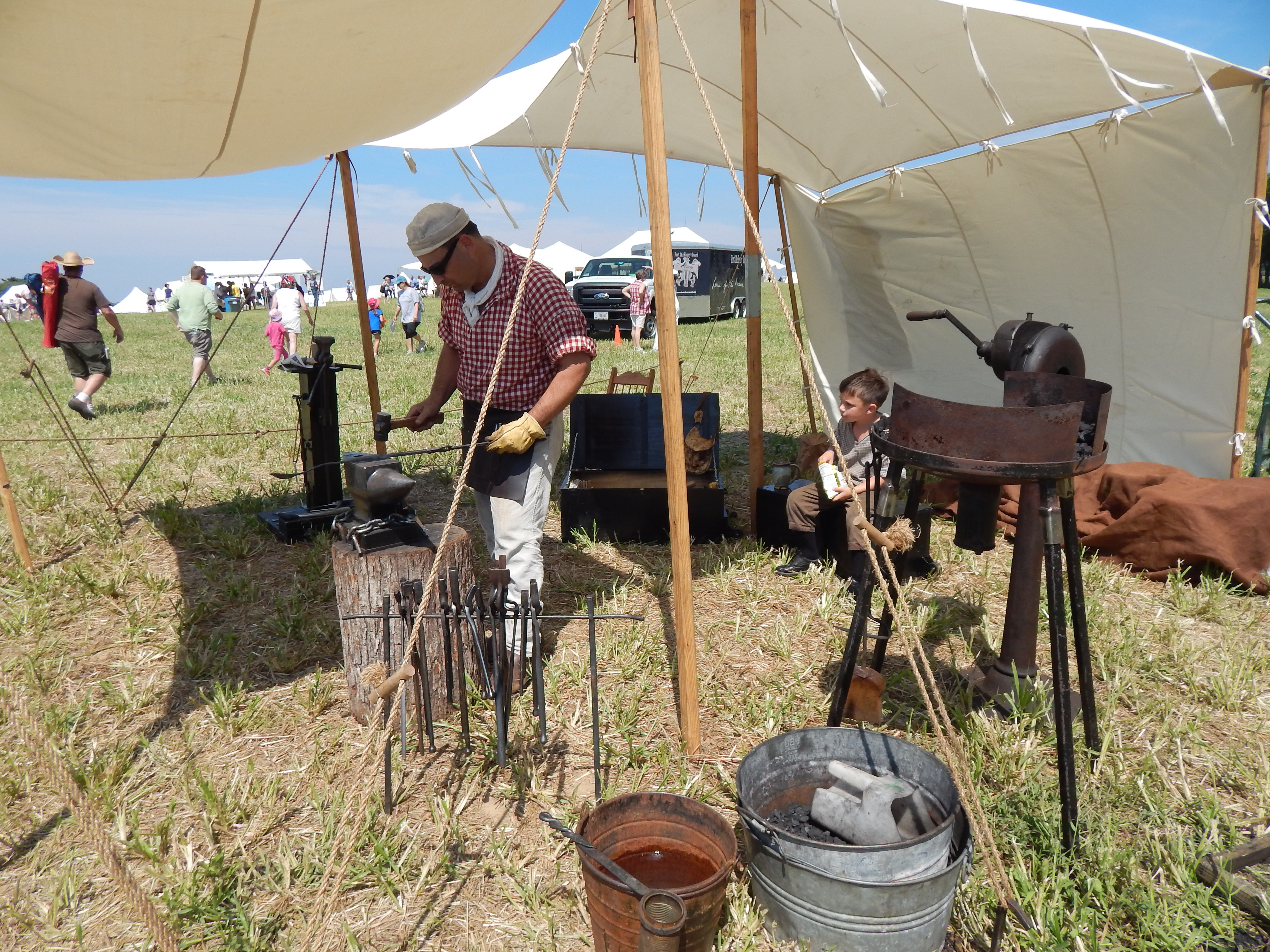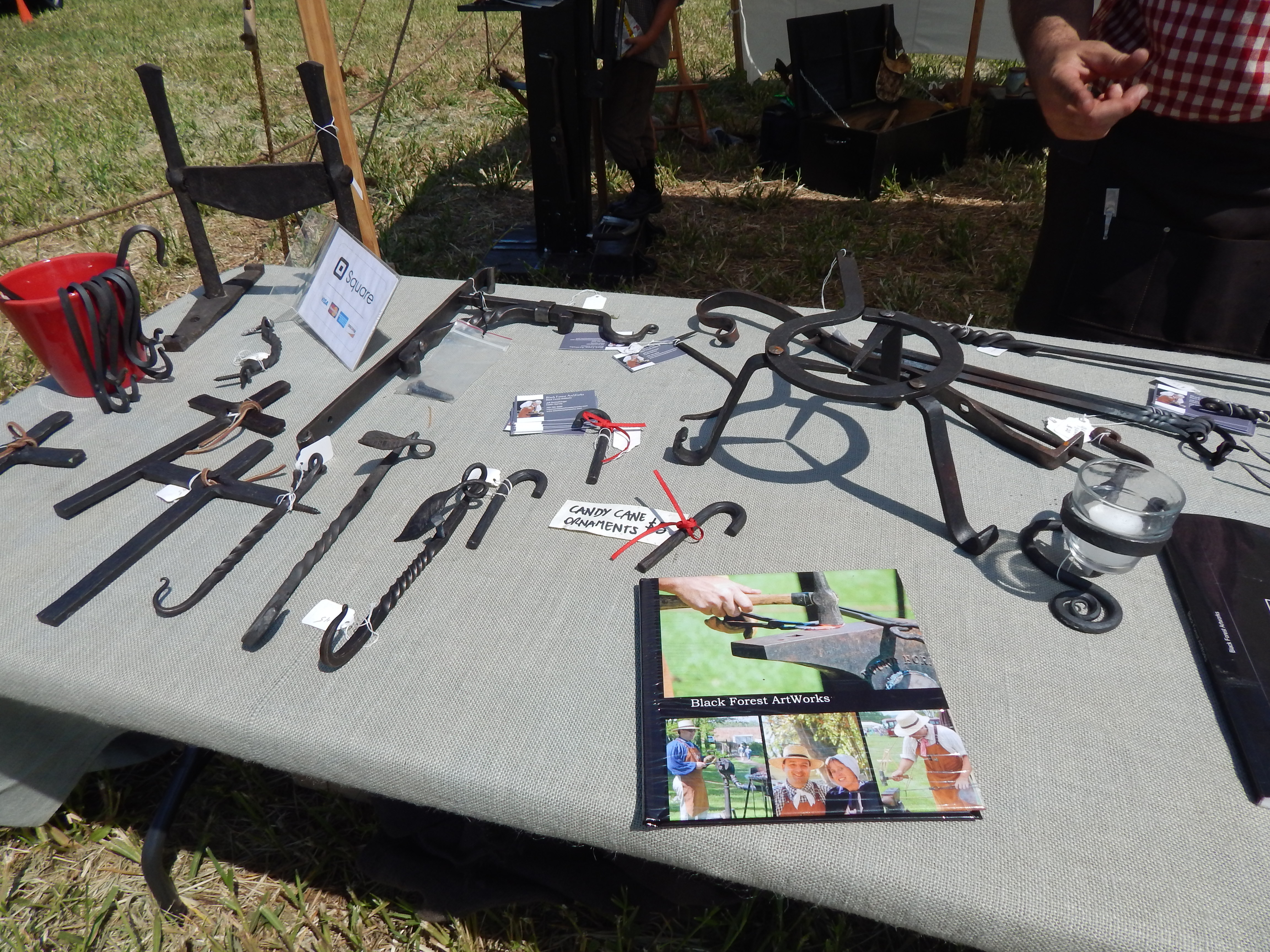 Jeff from Black Forest ArtWorks demonstrated the craft of blacksmithing. Blacksmiths made tools, gates, cooking utensils, weapons, and anything needed out of wrought iron or steel. The blacksmith uses heat, hammers and tools to bend and forge the creations.