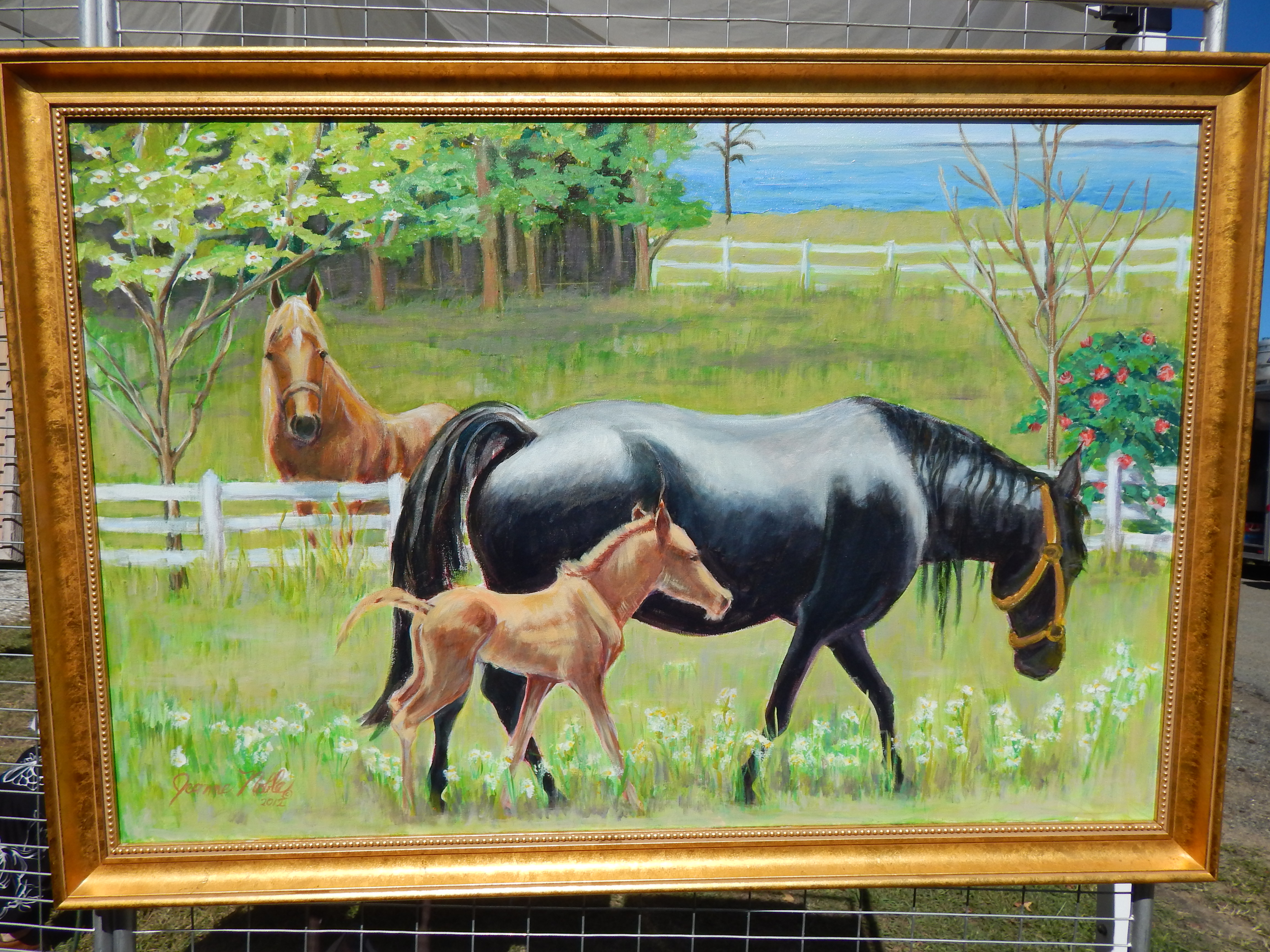 Artist at Work Studios & Gallery is an art gallery of community artists. Jeanne, proprietor, displayed art from the gallery. Jeanne’s painting of horse in the field, center photo, was on Fox 45’s Stevensville community story. Jeanne and Maureen are members of the The Chesapeake Art League in Stevensville.