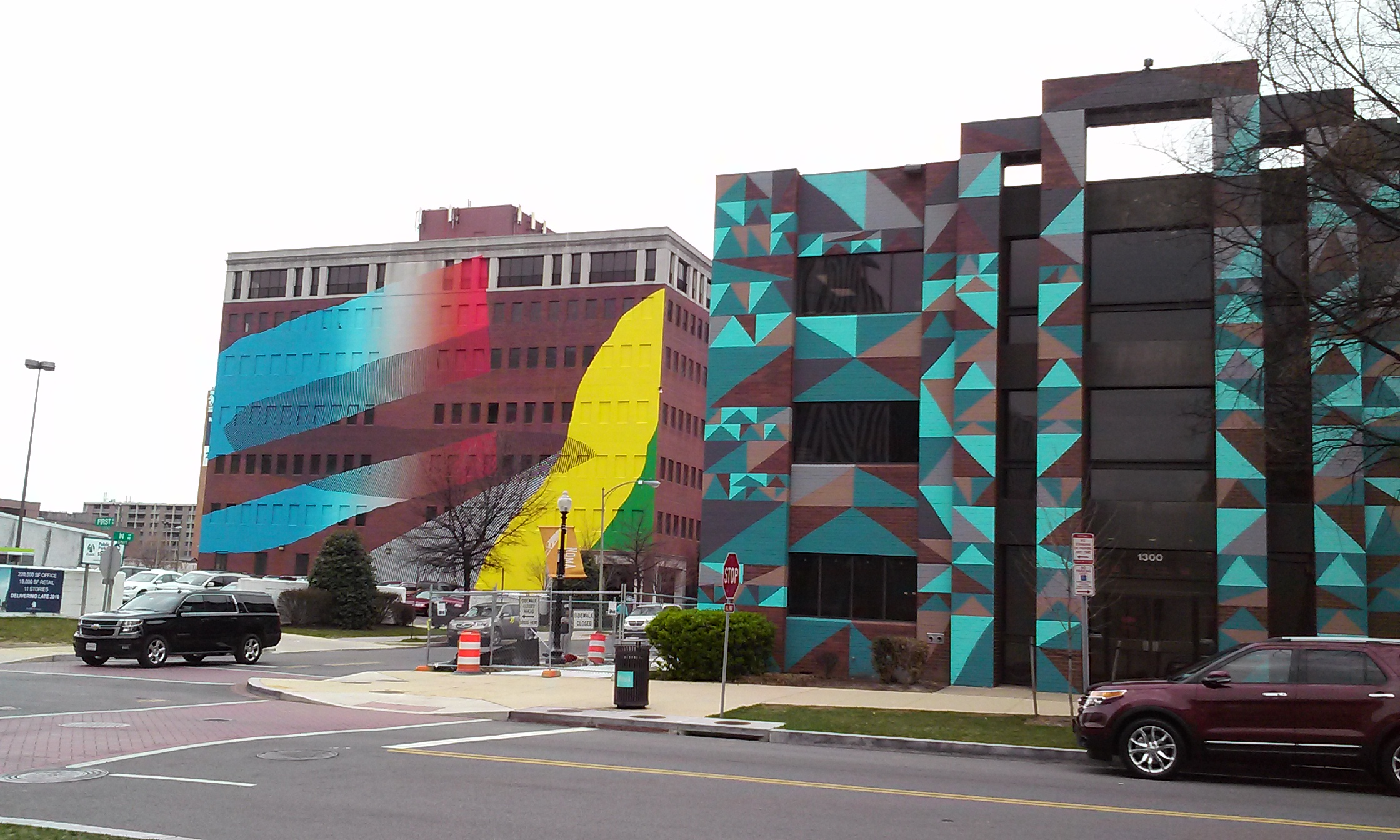 The NoMa area in DC has been experience a revitalization of new building and interesting urban art. These are buildings that have been painted to add interest their brick walls and are my favorite.
