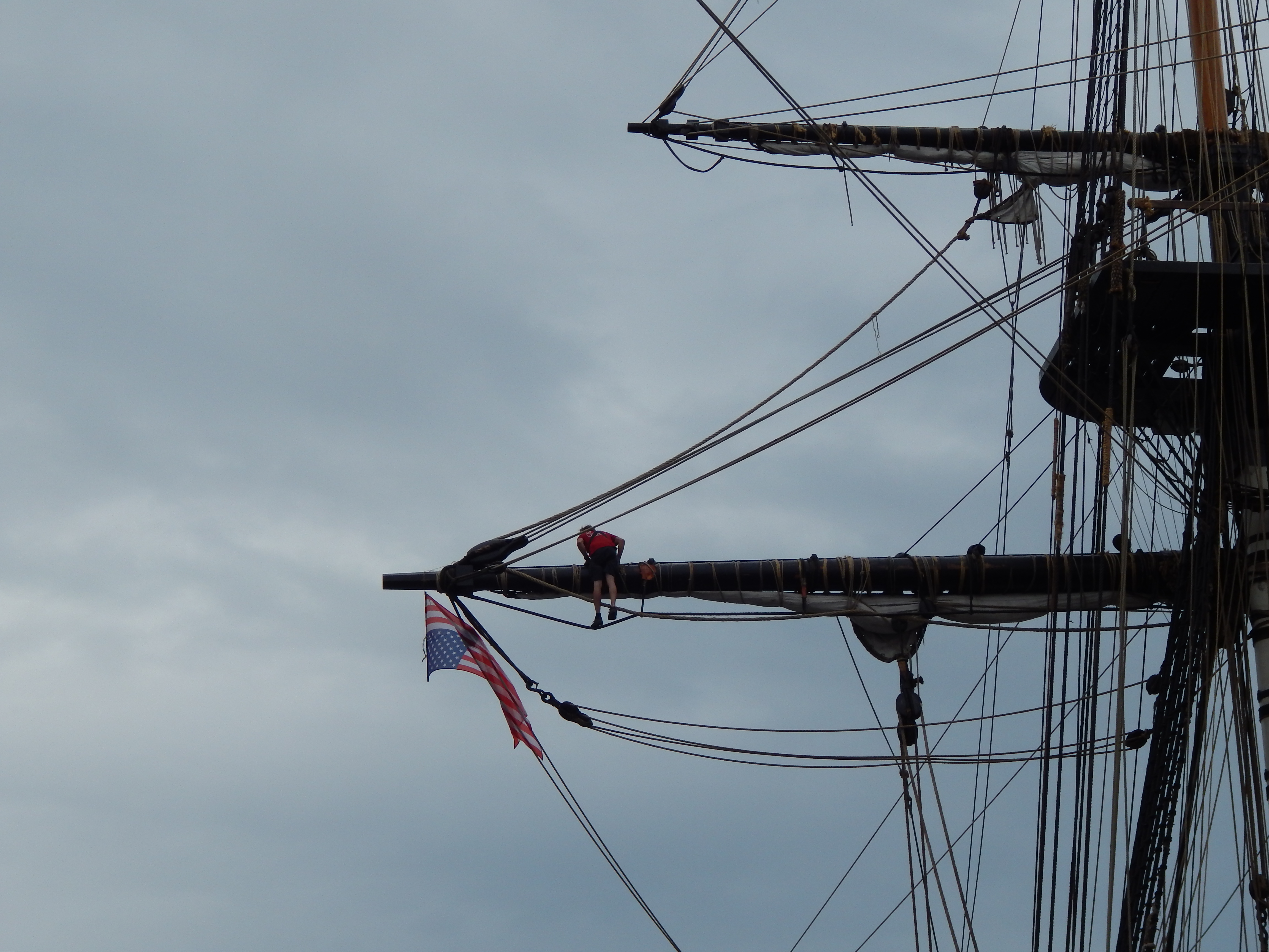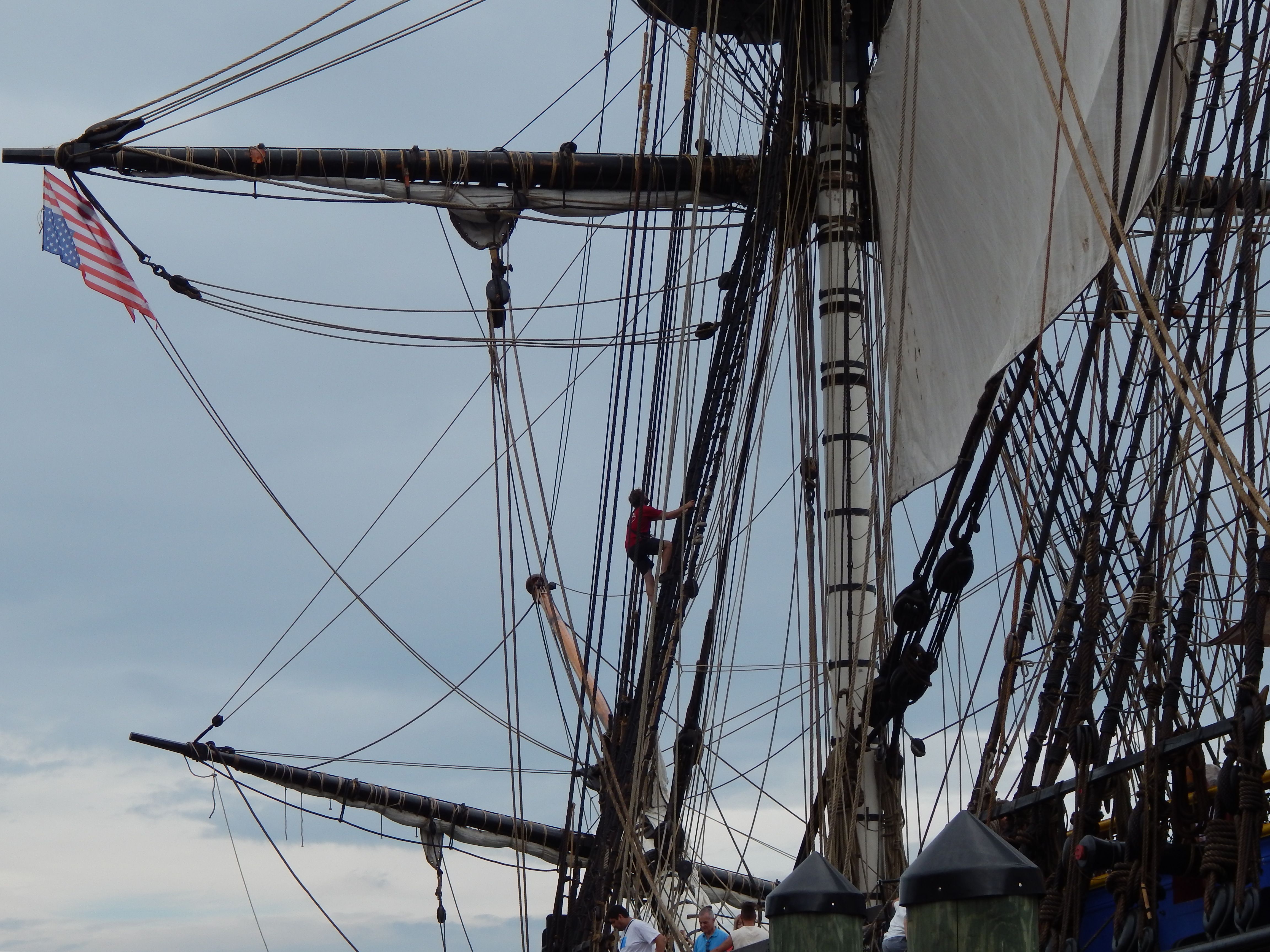 I was in awe at how big the ship was and while standing in line, looking up I caught sight of one of the shipmates scaling one of the mast to fix something. Boy, did he have a great view.